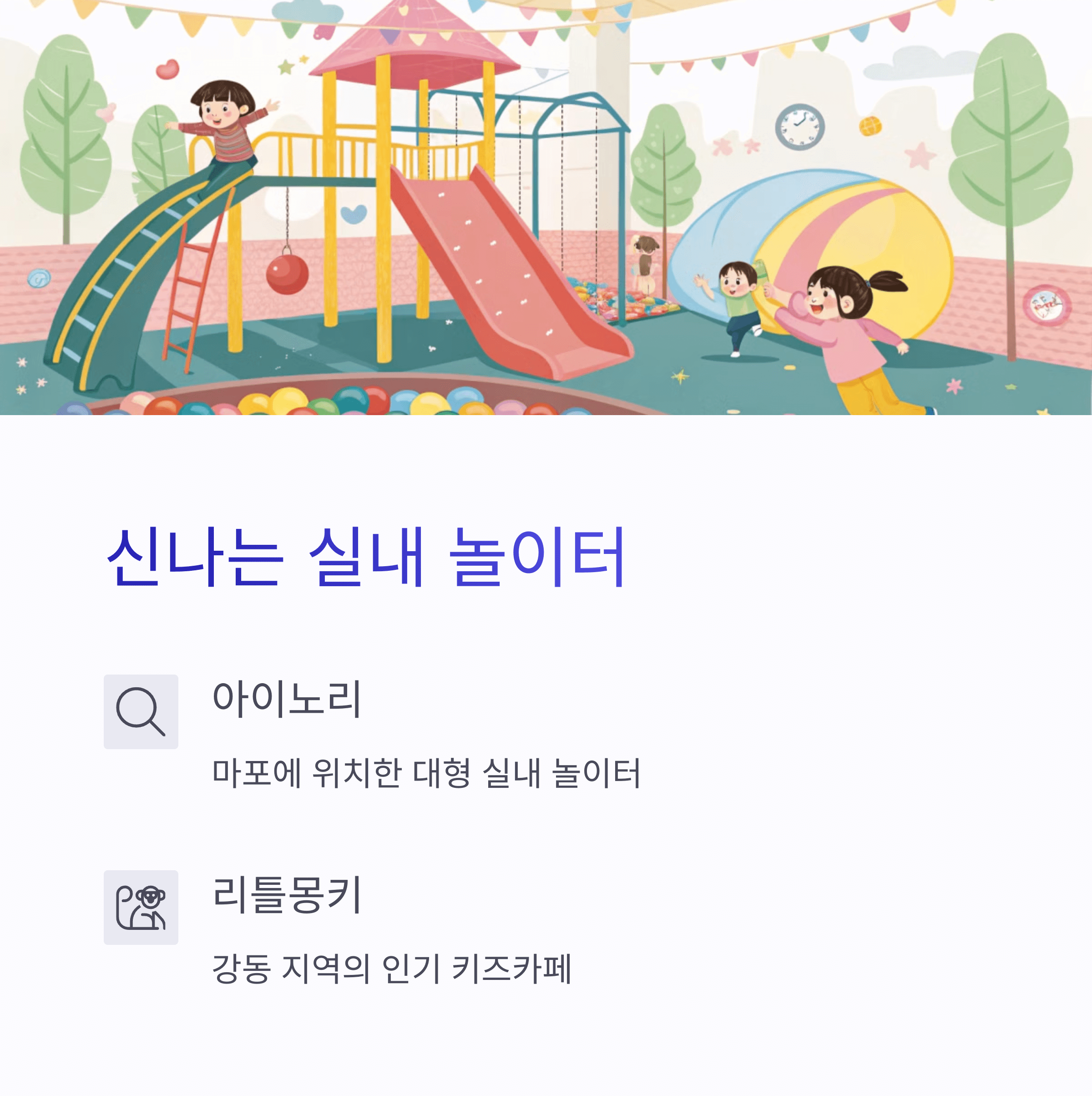 👨👩👧 아이와 함께 가기 좋은 실내 공간